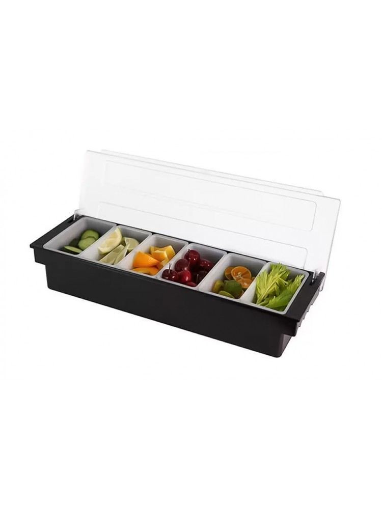 O porta condimentos de bar em policarbonato (PC) é uma solução prática e resistente para organizar ingredientes utilizados na preparação de cocktails e bebidas. Desenvolvido para uso profissional, permite manter frutas, guarnições e toppings organizados e sempre à mão, facilitando o trabalho do bartender durante o serviço.