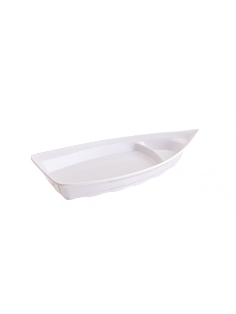 Barco de servir em melamina branco 32,5x15x5,2 cm, ideal para restaurante, buffet e catering.