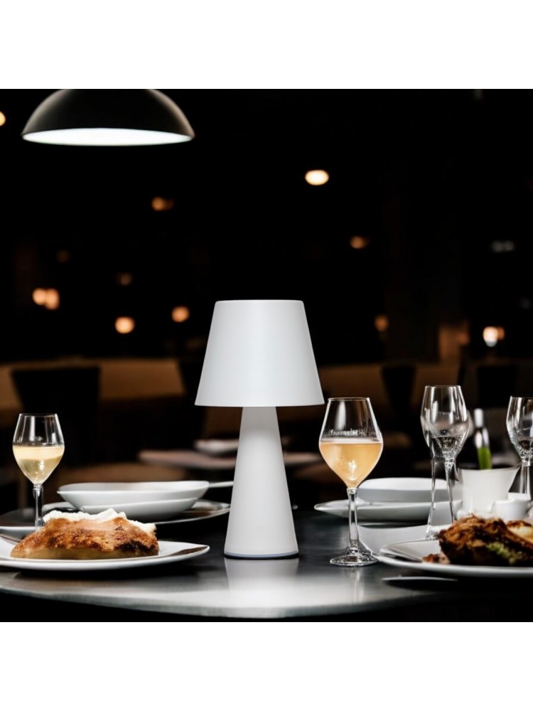 Este candeeiro de mesa portátil apresenta um design moderno e minimalista, ideal para iluminar qualquer ambiente com elegância e simplicidade. Com acabamento em tom escuro e linhas geométricas limpas, adapta-se facilmente a salas, quartos, escritórios, restaurantes ou esplanadas.