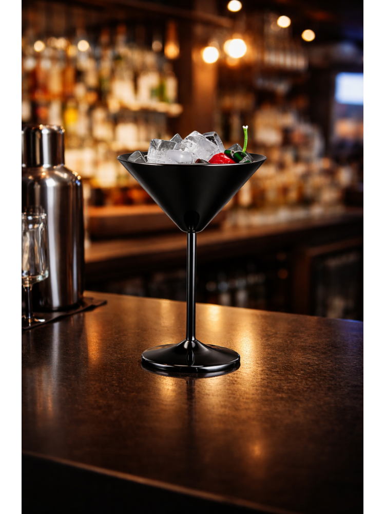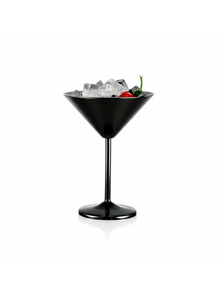 Taça Martini em aço inoxidável cor preto, perfeita para servir cocktails, sobremesas ou apresentações criativas com gelo e fruta. Produzida em inox de elevada resistência, é reutilizável, durável e totalmente livre de BPA.