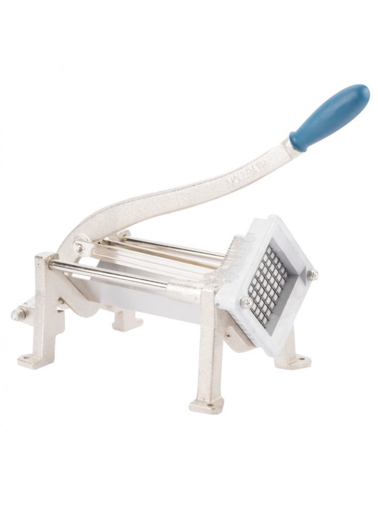 A estrutura sólida garante estabilidade durante a utilização, enquanto o sistema de alavanca ergonómico reduz o esforço e aumenta a produtividade. É uma solução prática, resistente e eficiente para preparação profissional de batatas frescas.
