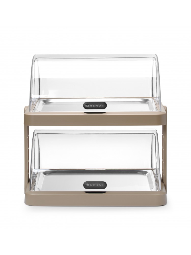 O Expositor Roll Top UNIQ criado pelo renomado designer holandês Robert Bronwasser, combina design moderno e premiado com funcionalidade profissional, ideal para buffets, catering e hotelaria. Mantém doces e snacks frescos, apresentáveis e fáceis de servir, garantindo exposição elegante e prática em qualquer serviço.