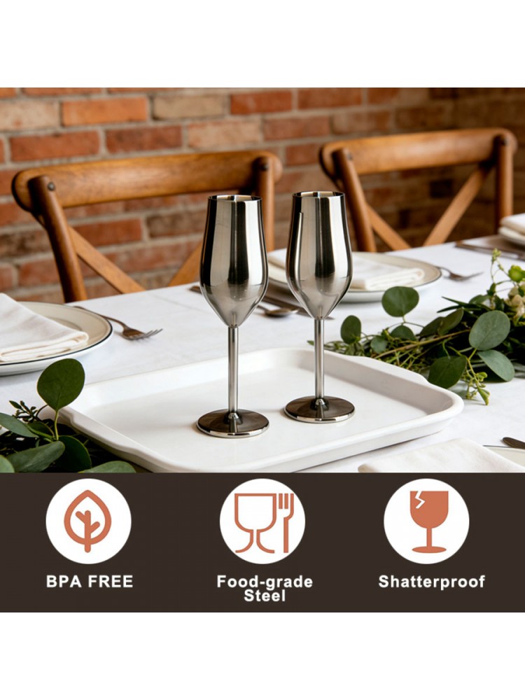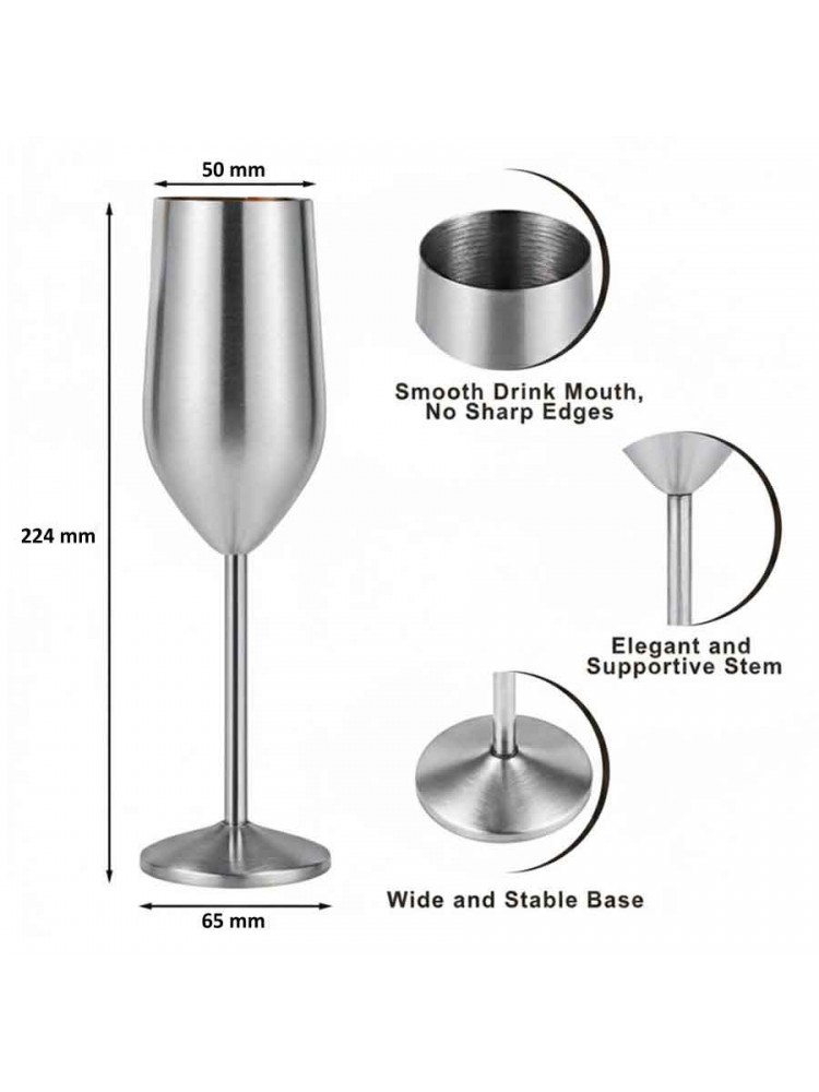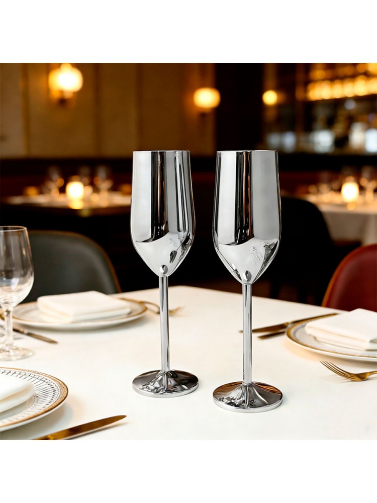 Copo flute em aço inoxidável de alta qualidade, ideal para servir espumantes, champanhe ou cocktails elegantes. Fabricado em inox resistente, é altamente durável, inquebrável, reutilizável e livre de BPA, garantindo total segurança alimentar.