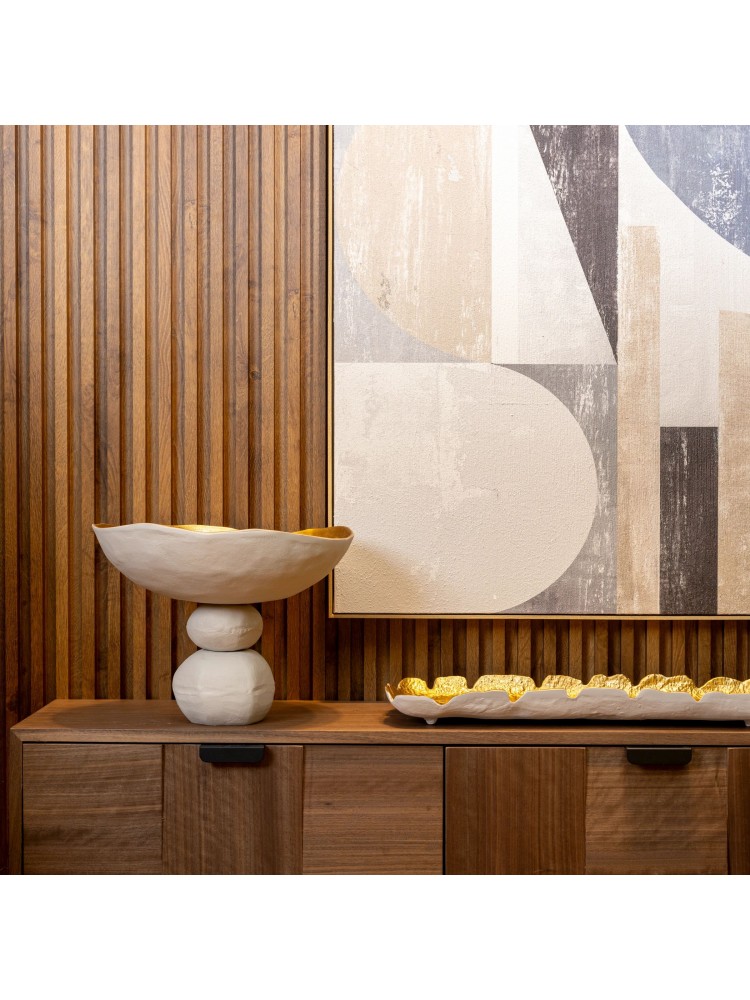 Imponente e sofisticada, esta fruteira em alumínio é perfeita para quem deseja destacar a decoração com elegância e modernidade. Seu design orgânico com bordas levemente onduladas traz um visual contemporâneo, enquanto o acabamento interno dourado adiciona um toque de requinte e exclusividade.