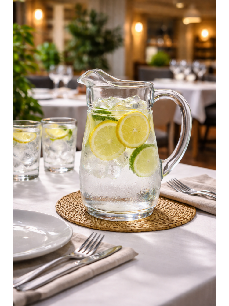 O Jarro Tivoli 2,3 litros em vidro é uma solução prática e elegante para servir bebidas em ambientes profissionais e domésticos. Com design clássico e linhas suaves, adapta-se facilmente a restaurantes, esplanadas, hotéis, catering e uso familiar.