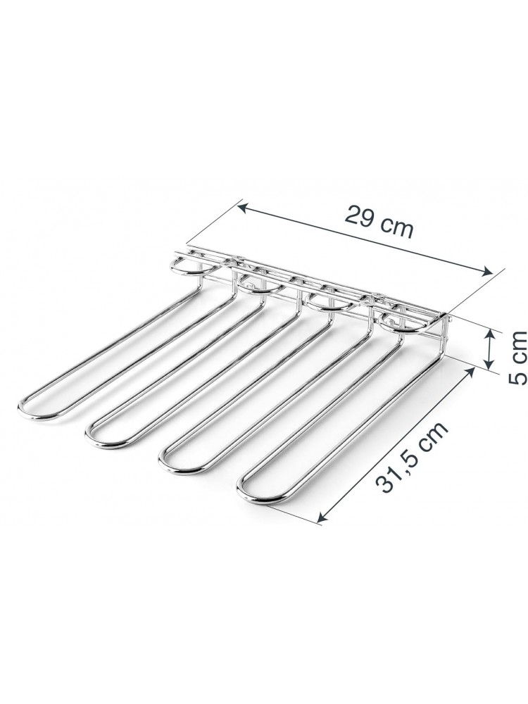O suporte para copos cromado para 12 copos é uma solução prática e elegante para organizar copos de pé em bares, restaurantes e espaços de serviço de bebidas. Desenvolvido para instalação sob prateleiras ou balcões, permite pendurar copos de vinho ou cocktail de forma segura, mantendo-os protegidos e sempre prontos a utilizar.