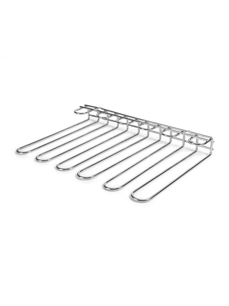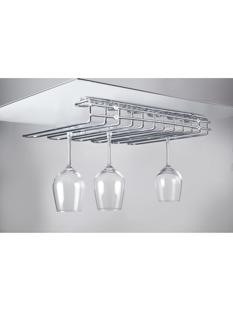 O suporte para copos cromado para 20 copos é uma solução prática e elegante para organizar copos de pé em bares, restaurantes e espaços de serviço de bebidas. Desenvolvido para instalação sob prateleiras ou balcões, permite pendurar copos de vinho ou cocktail de forma segura, mantendo-os protegidos e sempre prontos a utilizar.