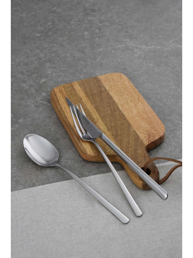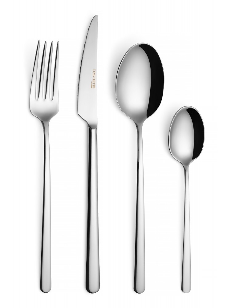 Produzido em aço inox AISI 304 (18/10), com 4,0 mm de espessura, o conjunto garante durabilidade, resistência e toque premium. O acabamento brilhante confere sofisticação e modernidade, destacando-se em qualquer composição de mesa posta.